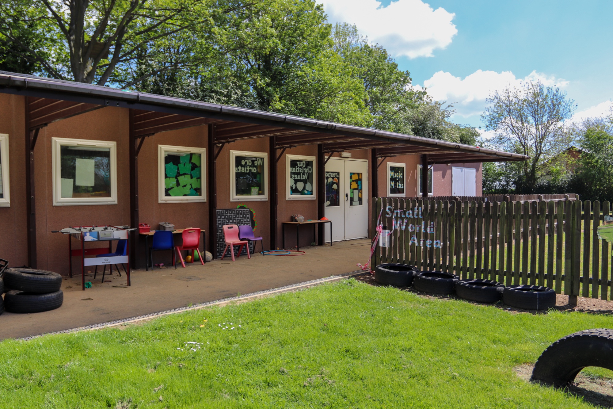These seven areas are used to plan our adult-led learning.  We also provide a range of stimulating and engaging activities which the children can access independently and a variety of opportunities for open-ended play. Children in EYFS learn by playing and exploring, being active, and through creative and critical thinking which takes place both indoors and outside.  Our outdoor areas are used all year round.